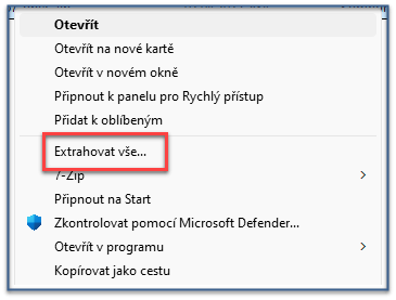 •V kontextovém menu vyberete možnost „Extrahovat vše“