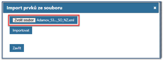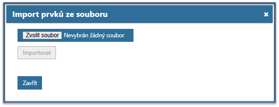 •Kliknutím na tlačítko Import prvků ze souboru je vyvoláno stejnojmenné pop-up okno.