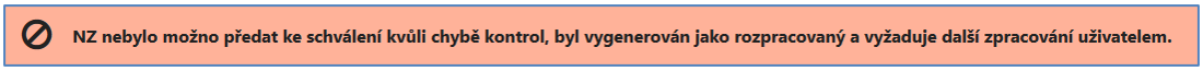 Jestliže zvolíte možnost Vytvořit z reklamace NZ ke schválení a je nutné daný prvek ještě upravit/doplnit, aplikace vás upozorní následující hláškou: