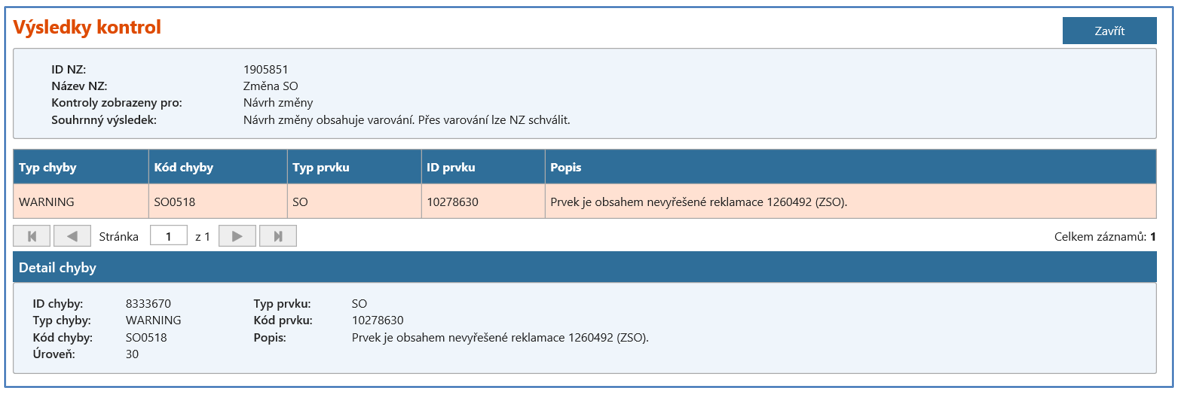 Jedná se pouze o varování, NZ lze následně schválit. Ovšem je nutné brát v úvahu i vložené reklamace na příslušný prvek a reklamace vyřešit.
