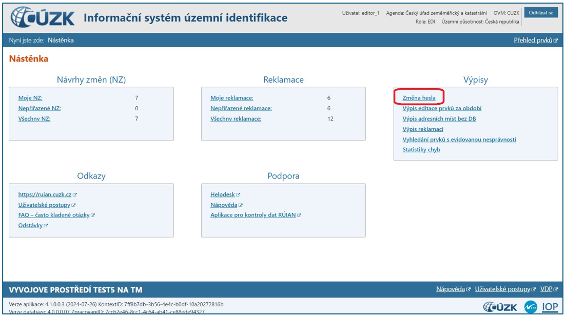 Interním uživatelům je po přihlášení umožněno změnit heslo při dodržení následujících podmínek: