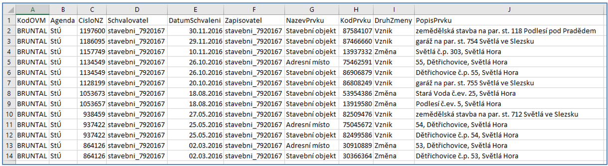 Obec: v sestavě budou vypsány prvky editované vaší OVM za agendu obce.