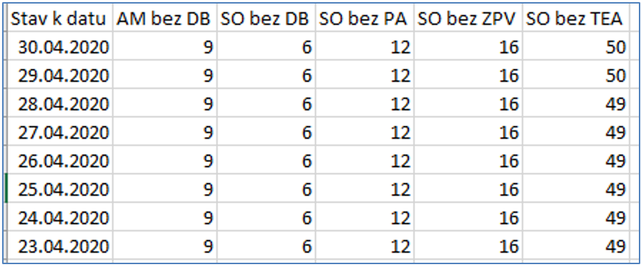 Obrázek 10: Ukázka CSV exportu statistiky Stav chyb