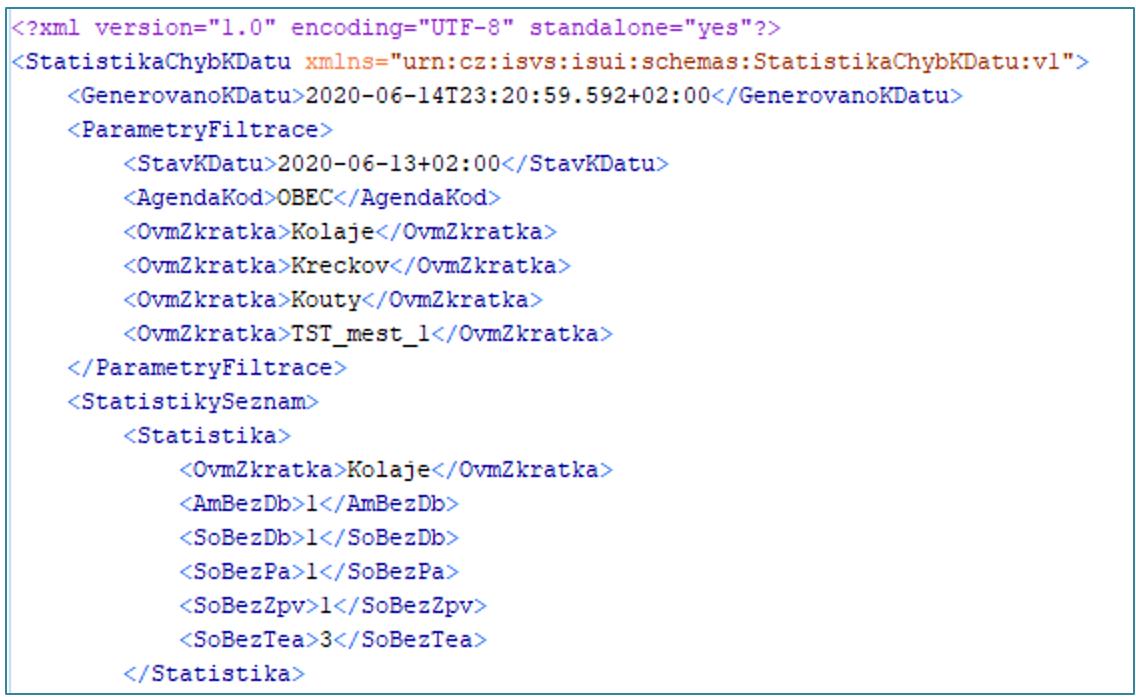 Obrázek 12: Ukázka XML exportu statistiky Stav chyb