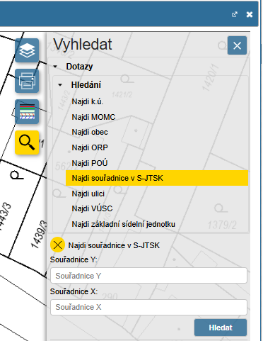 Je např. možné také vyhledávání místa na mapě pomocí souřadnic