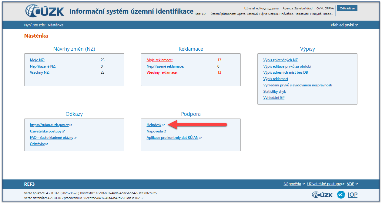 Konkrétní dotaz můžete zapsat do Helpdesku prostřednictvím aplikace ISÚI, kde je potřeba vyplnit Váš kontaktní email, aby odpověď nebyla odeslána pouze na podatelnu. Při zasílání dotazu uvádějte prosím i konkrétní informace o daném problému, může se tak významně zkrátit doba řešení Vašeho požadavku.