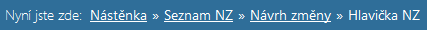 informuje, na jaké obrazovce se aktuálně nachází uživatel. Navigace je aktivní (s proklikávacími odkazy) a umožňuje přechod na všechny již navštívené nadřazené obrazovky