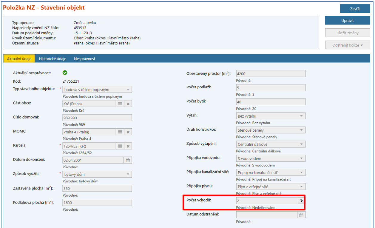 Nyní se vraťte do měněného SO č. p. 989, 990, kde je nutné nadefinovat vchody.