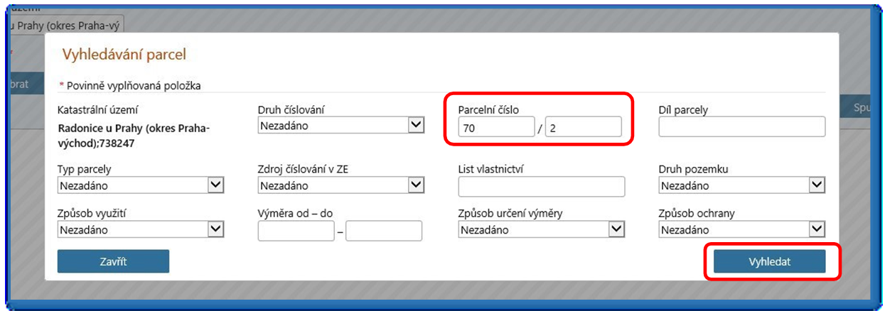Obr. 3: Vyhledávání parcel