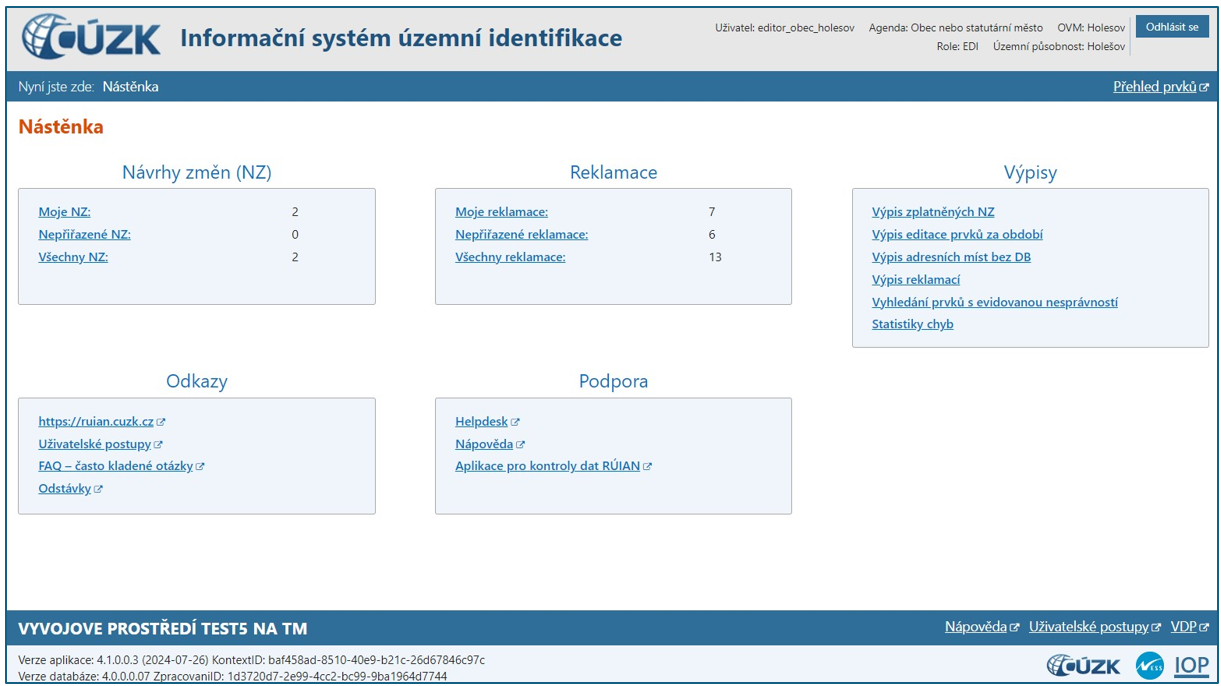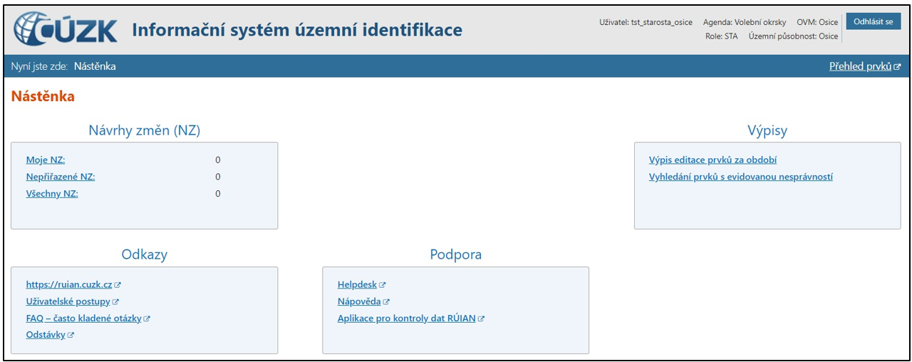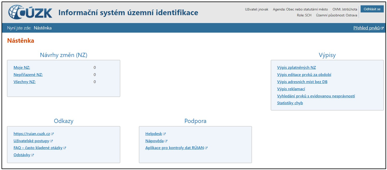 •Klikněte na nápis Informační systém územní identifikace v záhlaví libovolné stránky programu. Vždy se vrátíte na Nástěnku – hlavní stránku programu.