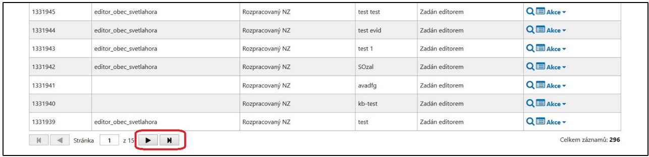 V dolní části stránky pod seznamem klikněte na ovládací šipky pro přechod na další stránku.