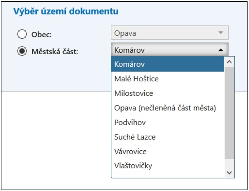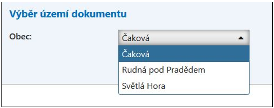 c) Uživatel agendy Stavební úřad dostane nabídku z obcí nebo městských částí (je-li jeho územní působnost definována seznamem obcí.
