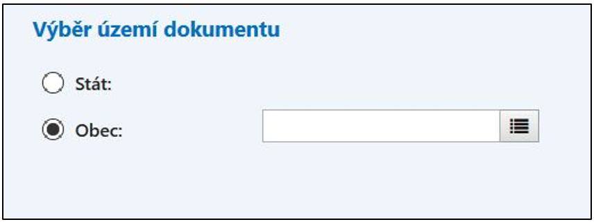 d) Uživatel agendy ČÚZK, případně uživatel z agendy speciálního stavebního úřadu, má územní působnost na celém území státu, ale pro pohodlnější práci je výhodné vybrat území obce.