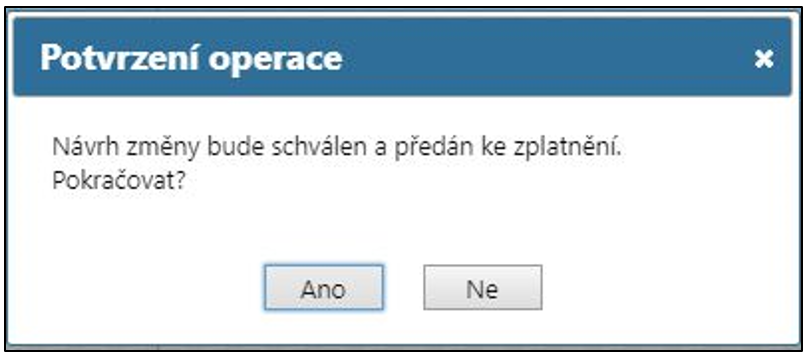 •Potvrďte schválení NZ a předání ke zplatnění kliknutím na Ano.