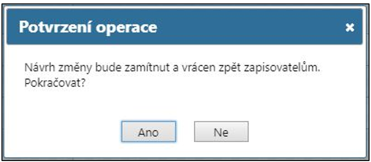 Pokud Schvalovatel uzná, že návrh změny není v pořádku a je třeba jej upravit, zamítne jeho schválení a návrh změny se vrací zpět k Zapisovateli.