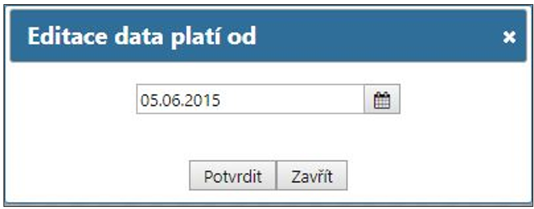 Tlačítkem Potvrdit se vybrané datum vloží do sloupce Platí od.