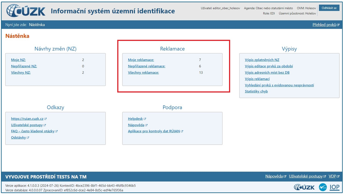 Všechny reklamace k řešení, ke kterým má přihlášený uživatel přístup v rámci agendy a územní působnosti, naleznete po přihlášení v bloku Reklamace na úvodní obrazovce aplikace ISÚI.